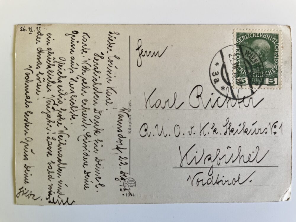 (hhl 89) MF pohlednice prošlá poštou, 1915. Adresát Kitzbühel.