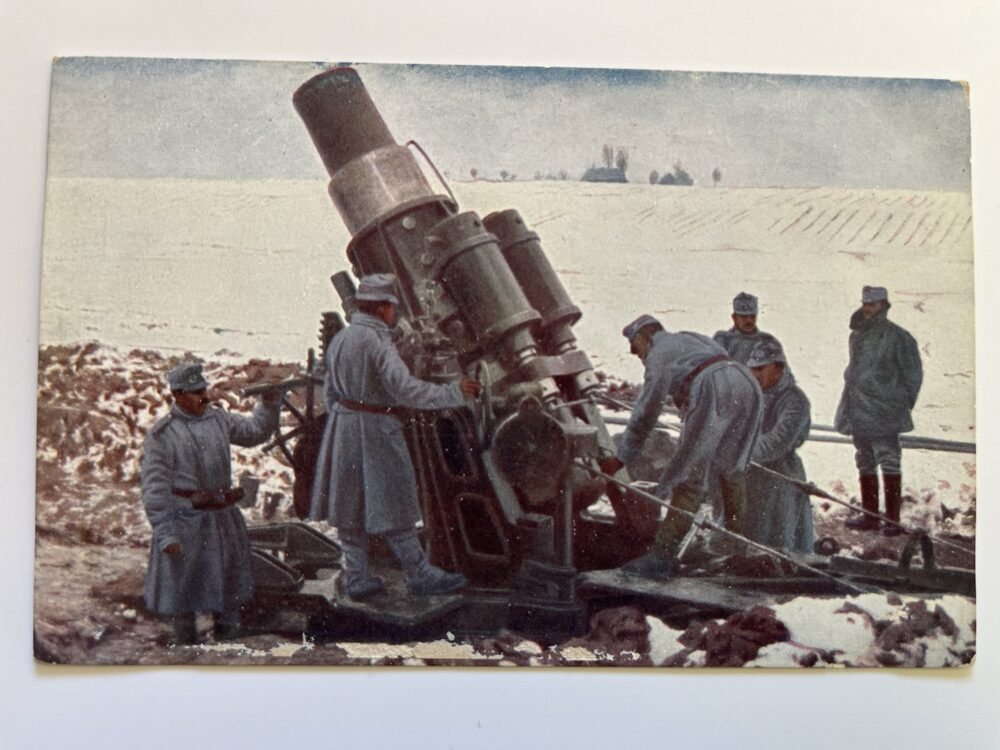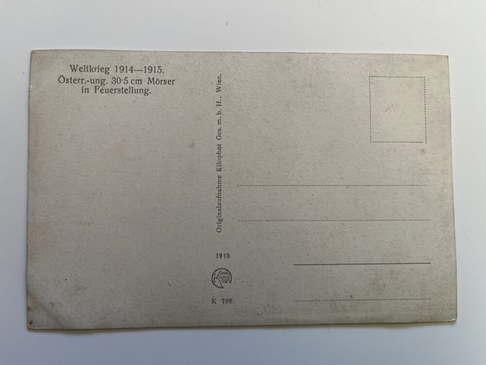 (hhl 120) MF, pohlednice čistá. Světová válka 1914-1915. Rakousko-Uhersko 30,5 cm minomet v palebném postavení