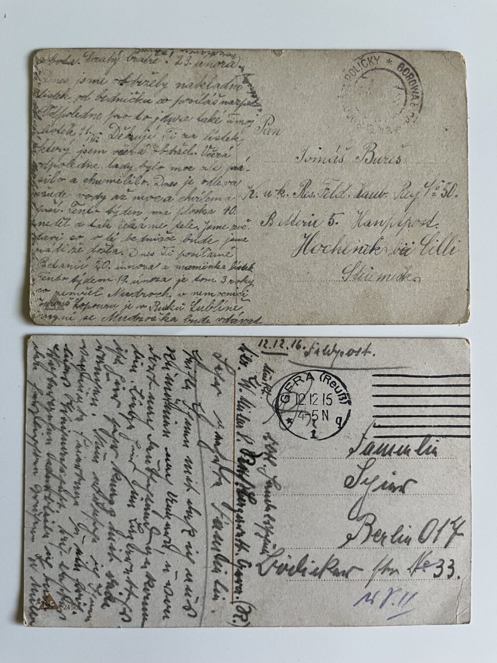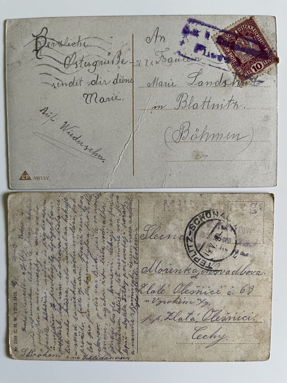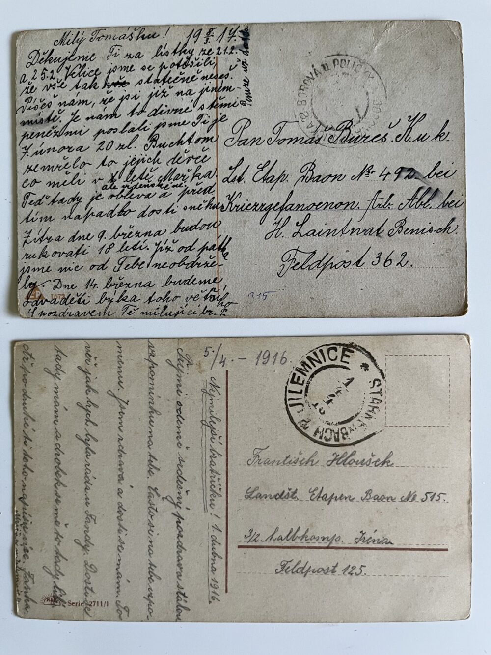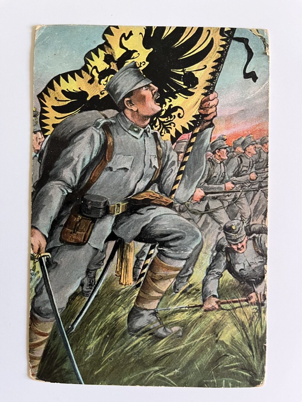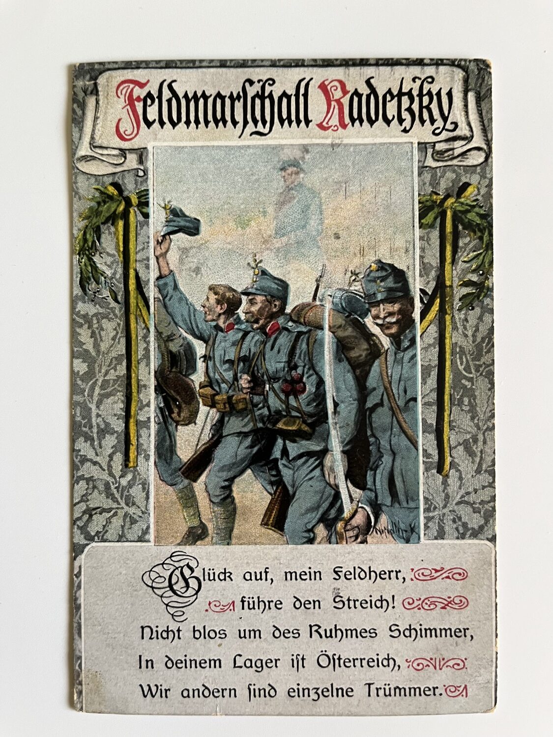 (hhn 23) MF 6x pohlednice prošlá poštou. Např. Adresát Zlatá Olešnice, okres Jablonec nad Nisou. Na šťastné shledání – vojáci s dívkami, vítězství – občerstvení, ženy vítají vojáky. Polní maršál Radecký. Výstroj, sumky, zbraně, šavle, pušky, koláže…