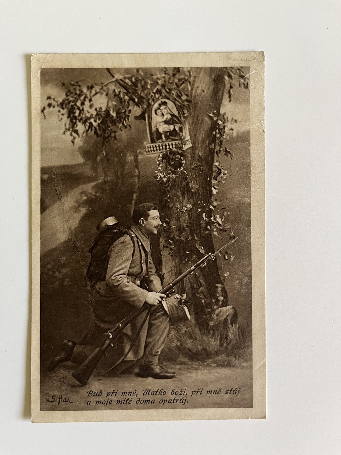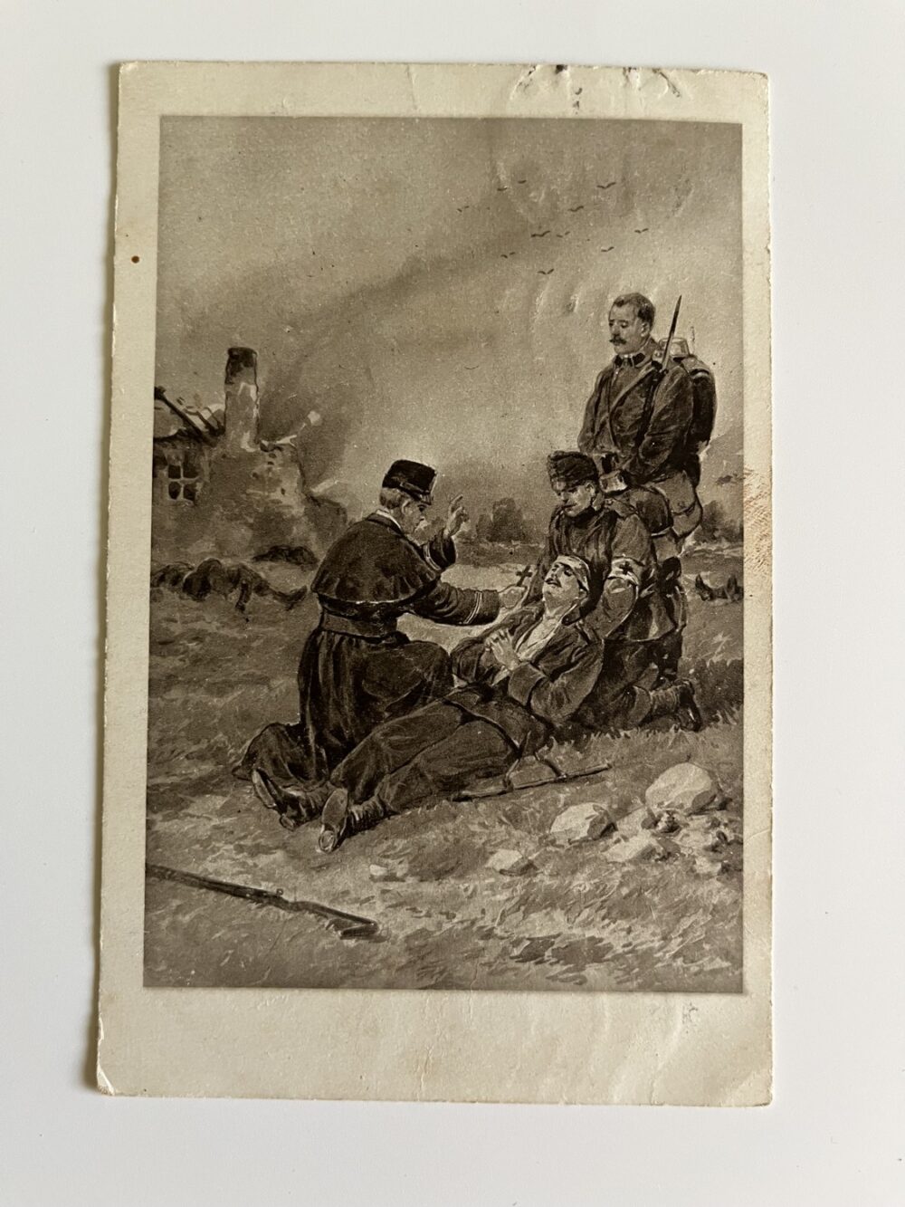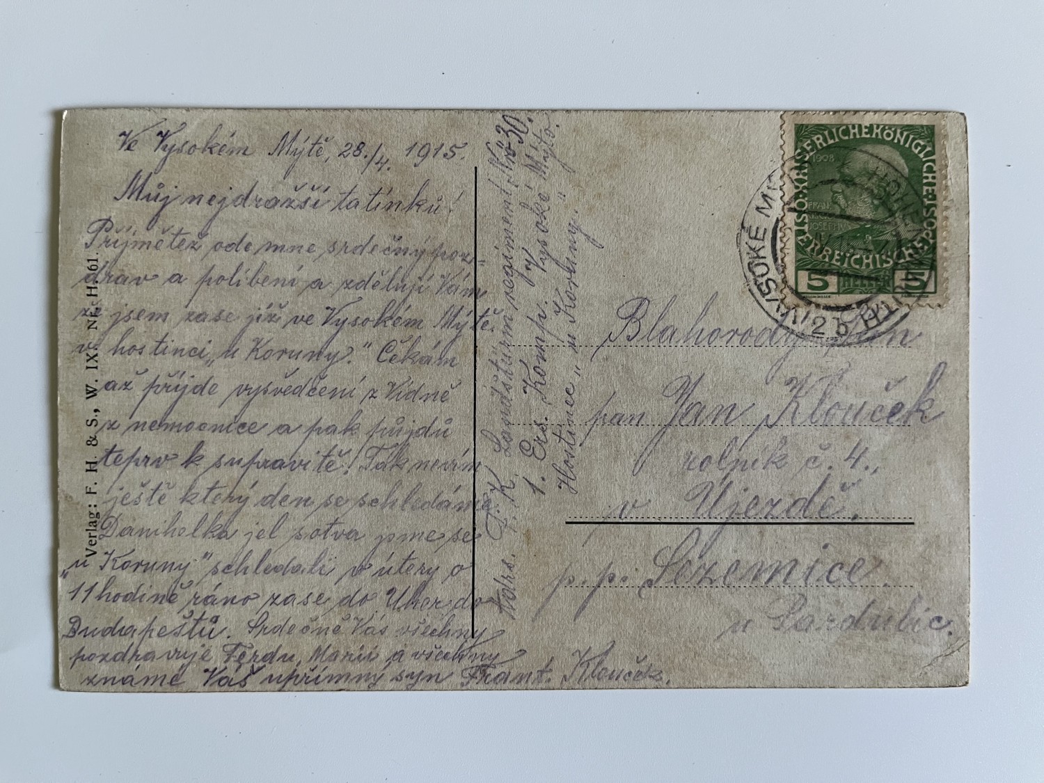 (hhn 17) MF 3x neprošlá, 2x prošlá. Adresát Kvasice, okres Kroměříž, 1915. Adresát Újezd,Sezemice, okres Pardubice 1915. Vojáci, zbraně, koně, výzbroj, výstroj, zdravotník…