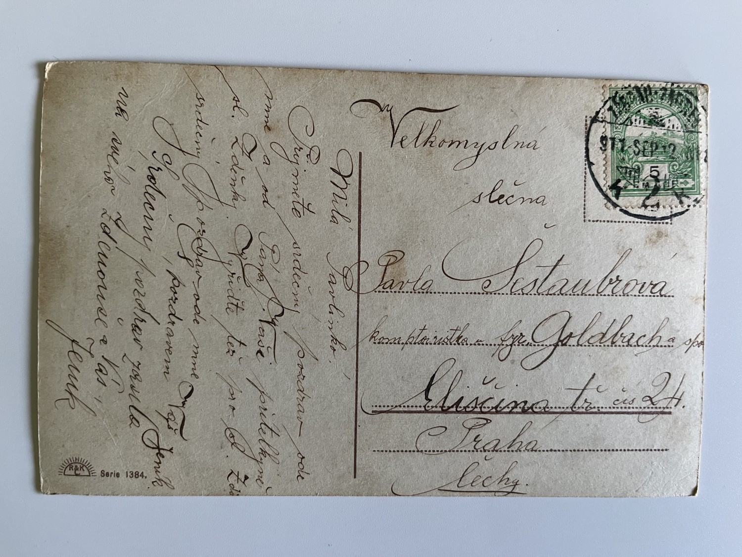 (hhn 1) MF 3 x pohlednice prošlá poštou. Adresát Kladno, 1909. Adresát Eliščina tř. Praha. Adresát Mariánské lázně, 1910