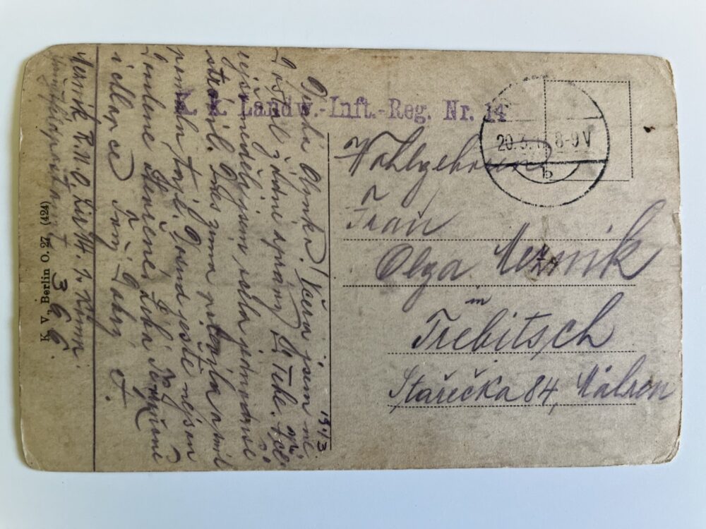 (hhl 72) MF prošlá, 1917. Adresát Třebíč. Razítko.