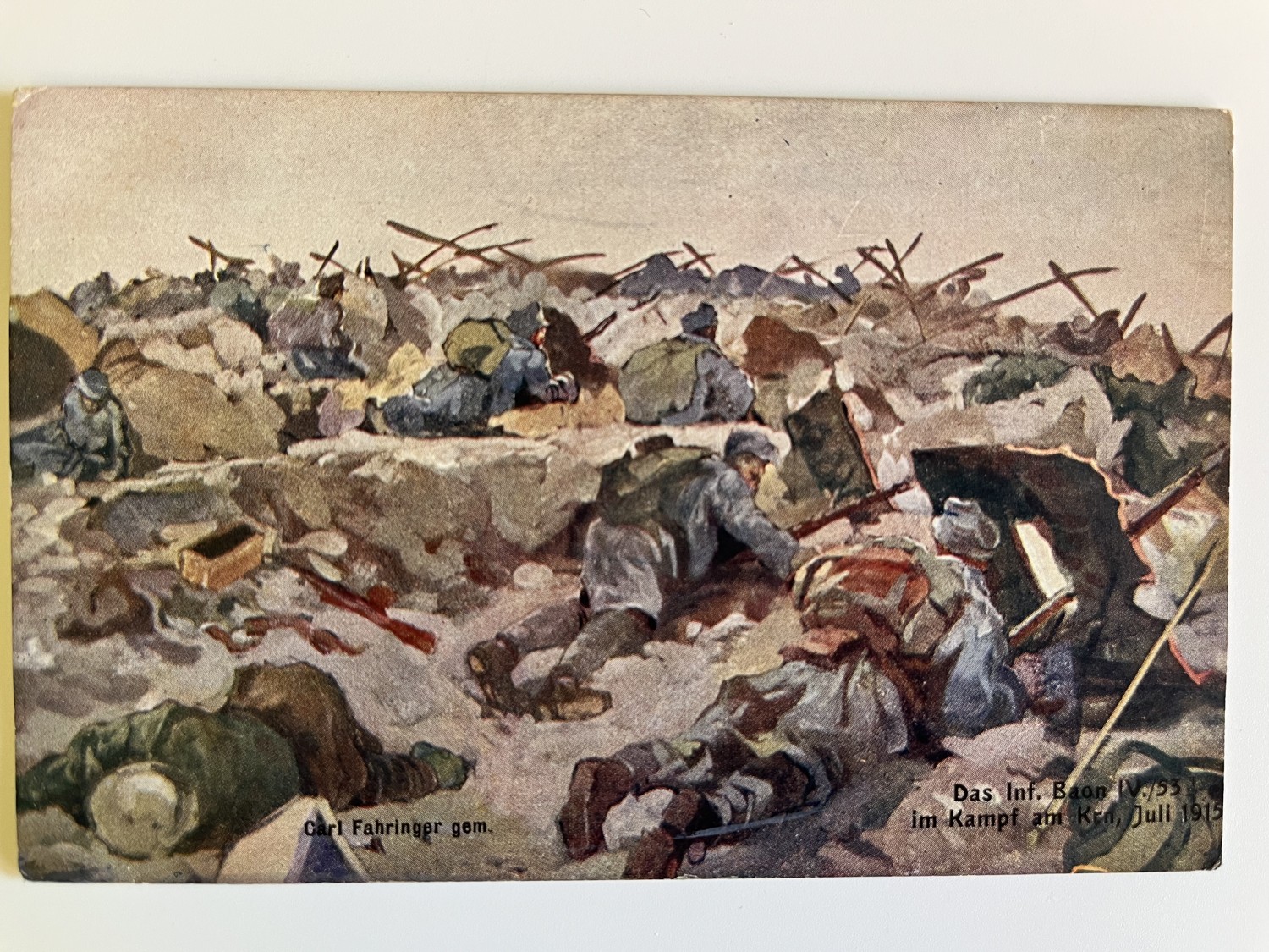 (hhl 21) MF pohlednice je čistá. Oficiální pohlednice pro Červený kříž. Inf.Baon IV./53 v bitvě na Krnu, červenec 1915