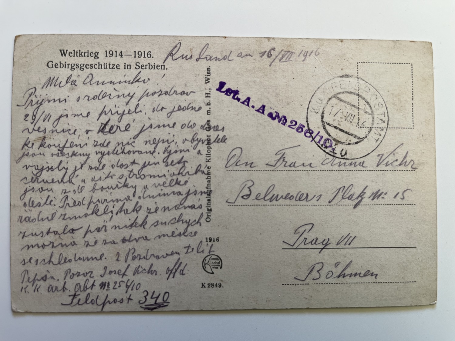 (hhl 101) MF pohlednice prošlá, 1916. Razítko.
