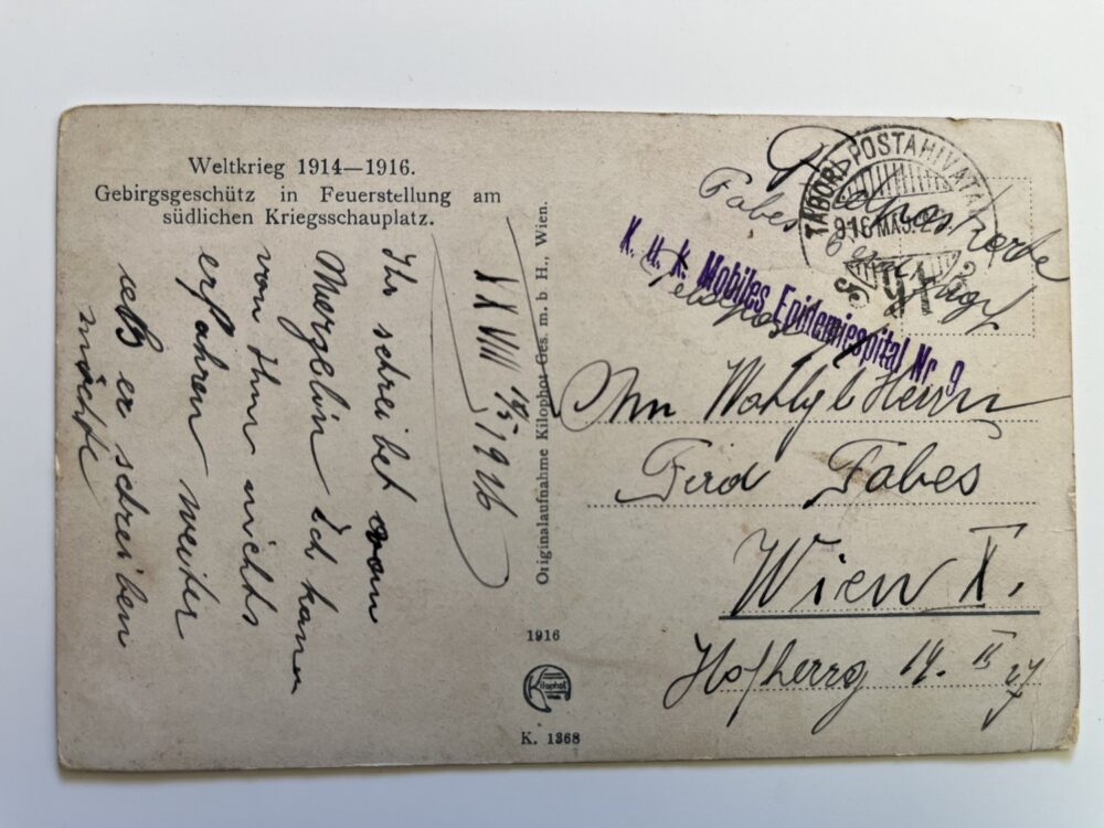 Vojenská pohlednice WW1 - Horské dělo v palebné pozici, 1916 - Obrázek 2