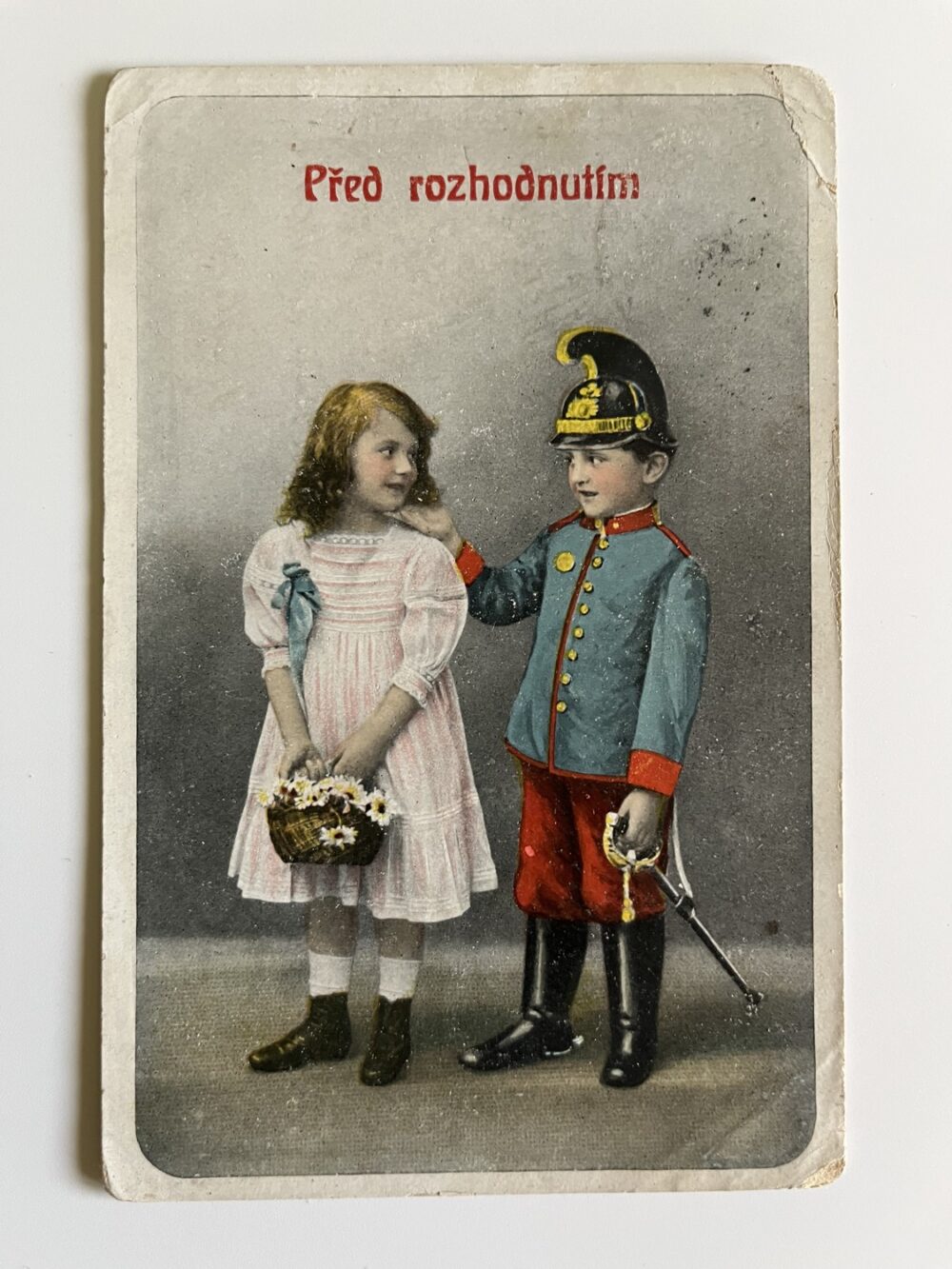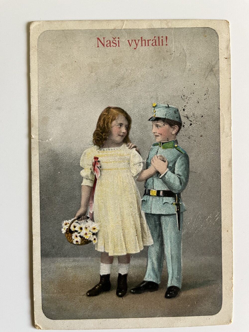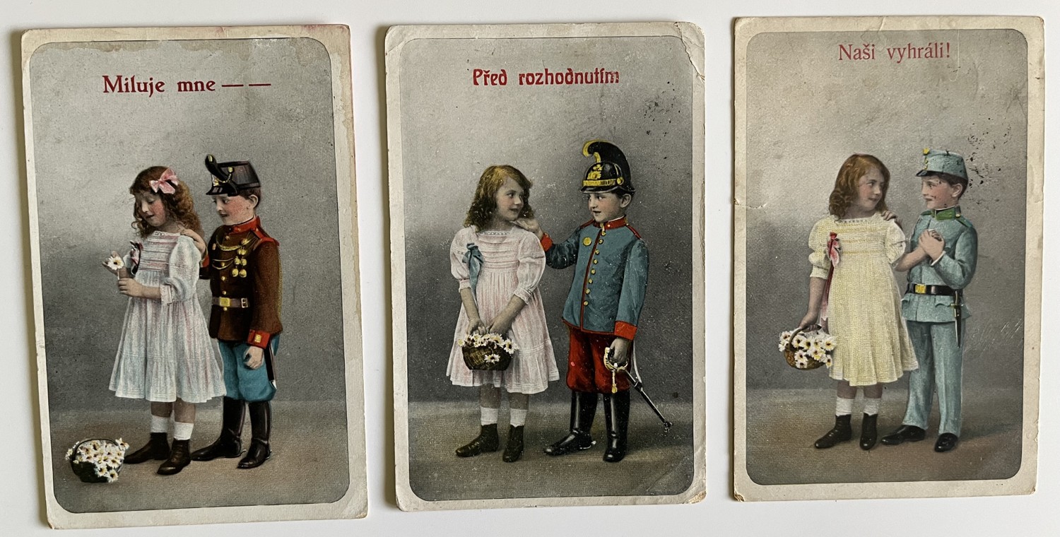 (hhn 5) MF pohlednice prošlé poštou. Miluje mne…Před rozhodnutím! Naši vyhráli! Malý husar, Tyrolsko, razítka, bajonet