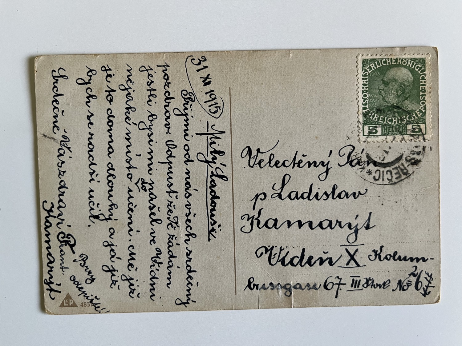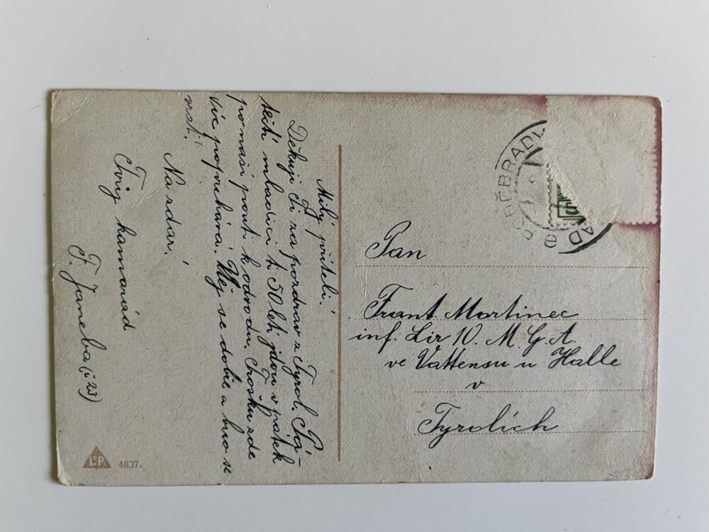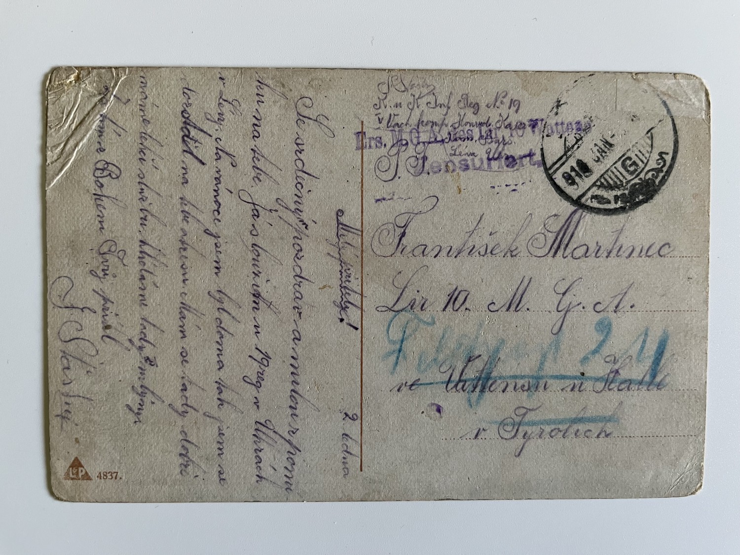 (hhn 5) MF pohlednice prošlé poštou. Miluje mne…Před rozhodnutím! Naši vyhráli! Malý husar, Tyrolsko, razítka, bajonet