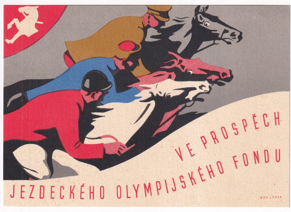Pohlednice Ve prospěch jezdeckého olympijského fondu,Pardubice 1937