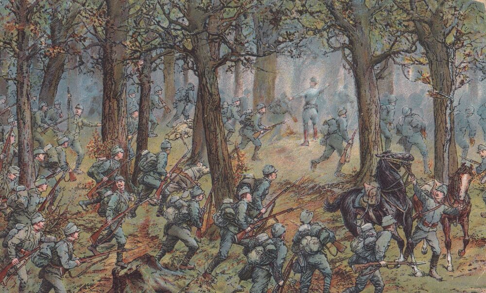 SoldPohlednice RU Velitel Wächter vede zálohu k útoku v boji u Břežan 1916