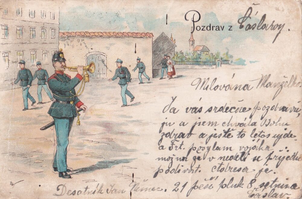 SoldPohlednice RU Pozdrav z Čáslavy, Voják s trubkou před r.1918