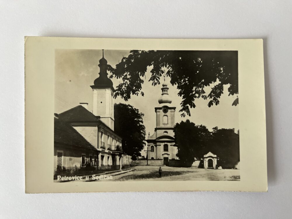 Pohlednice místopis Rokycany – Na Pátku kostel Panny Marie Sněžné 1942