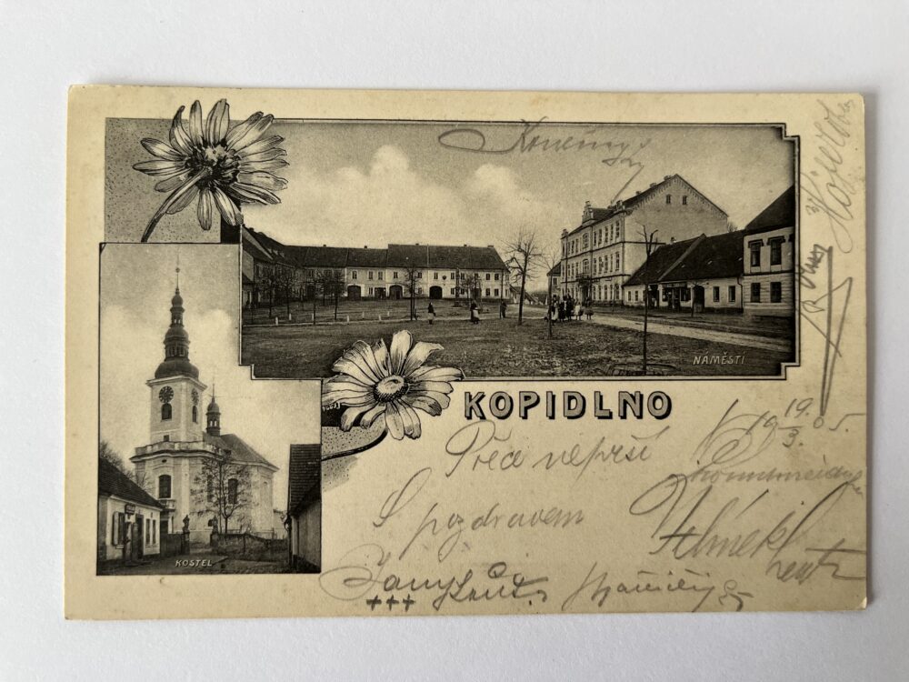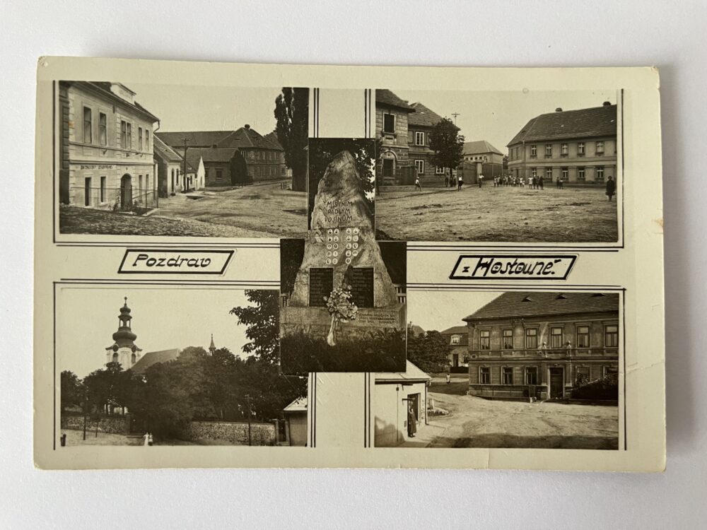 Pohlednice místopis Kladno – Náměstí, hostinec, obchody r.1929