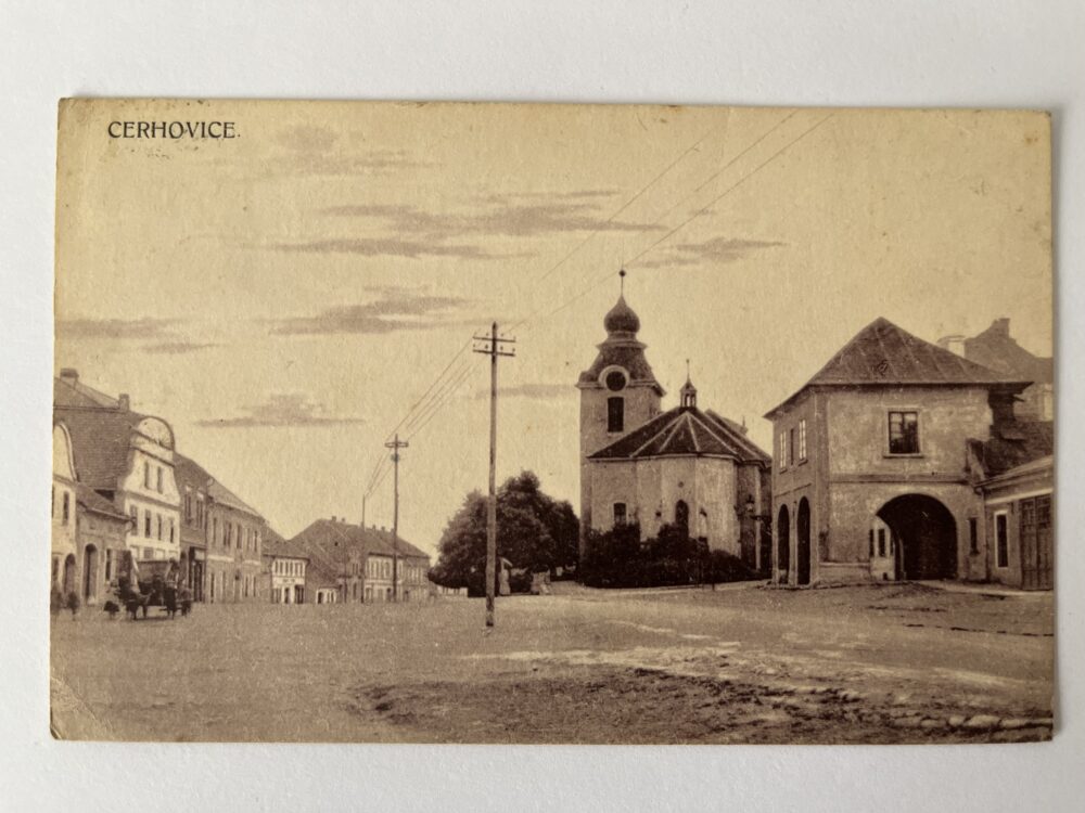 Pohlednice místopis Klatovy – náměstí, radnice, kostel r. 1918