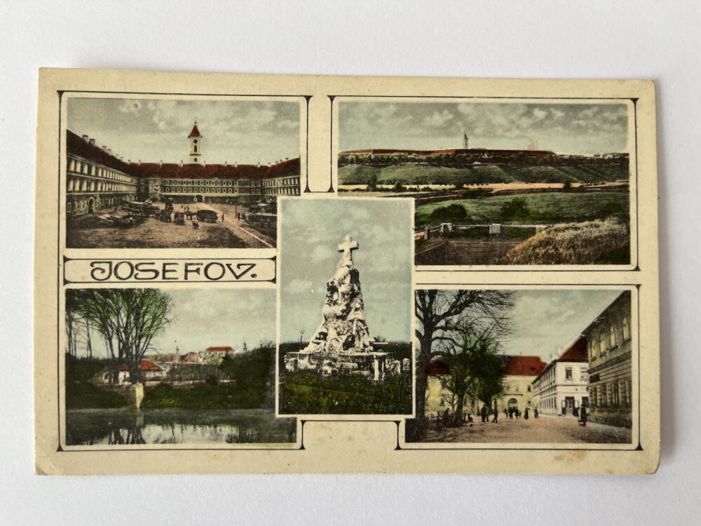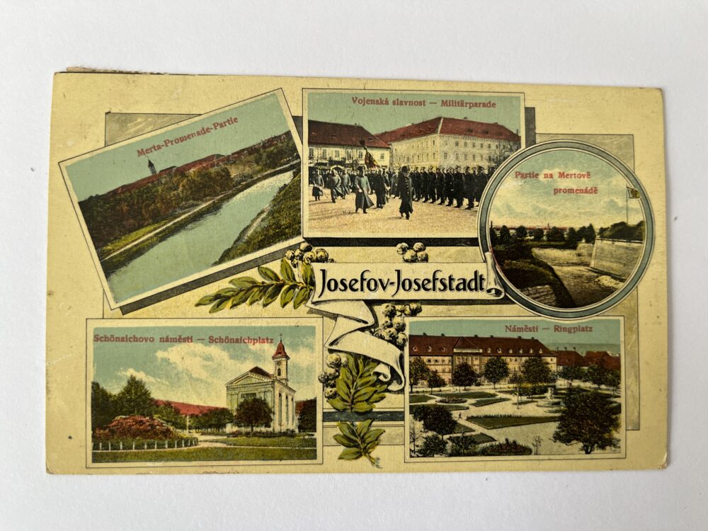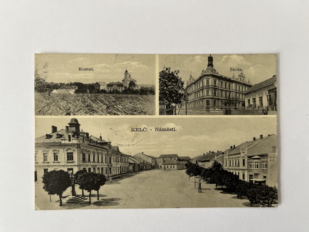 Pohlednice Kolín, koláž – Náměstí, památník Fr. Kmocha, promenáda 1927