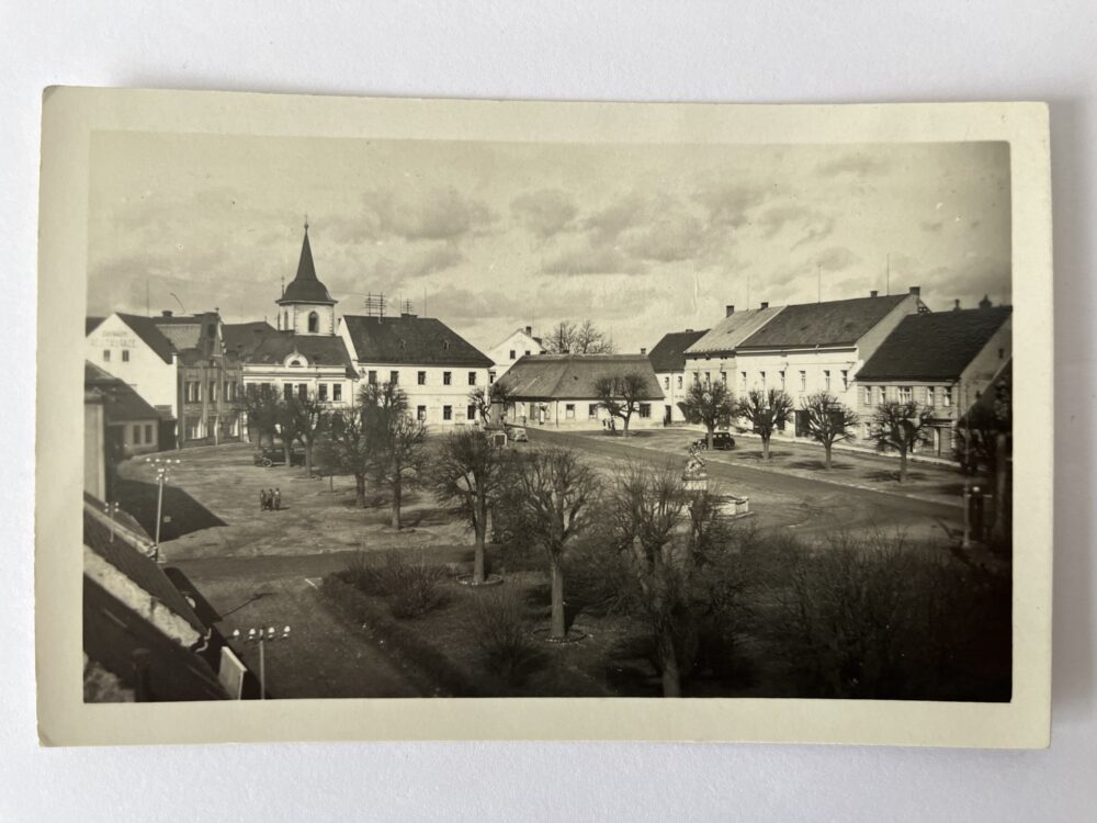 Pohlednice Slaný – Náměstí Pošta, Fotografie automobily, autobusy 1941