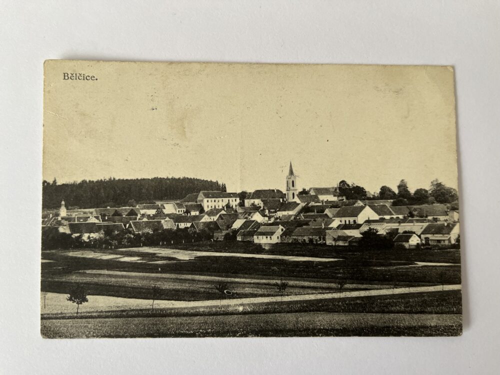 Pohlednice místopis Bělčice, celkový pohled okres Strakonice, 1930