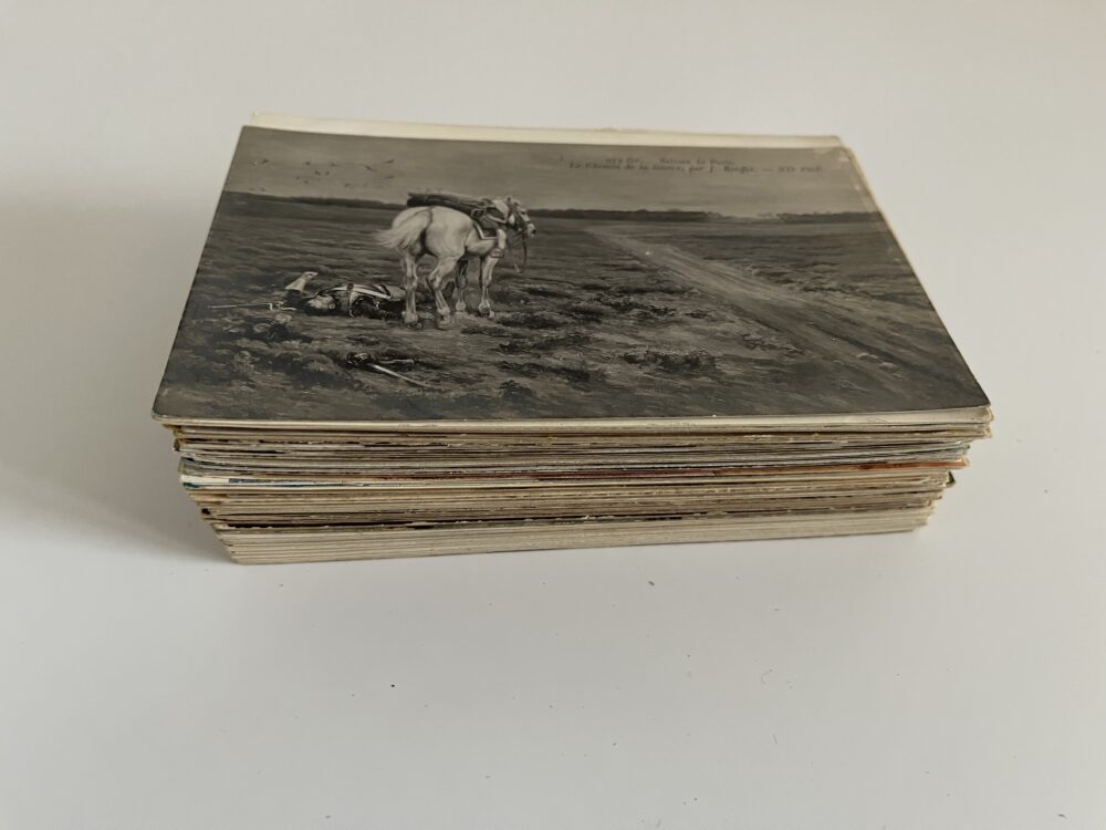 Vojenské pohlednice RU vojáci v zákopech,WWI,voj.technika Francouzské bojistě 94 ks