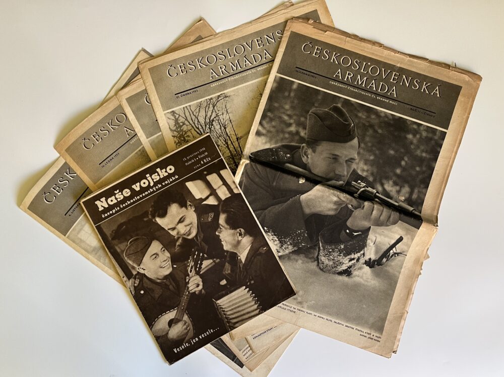 Fotopohlednice – Vojáci v průvodu, vlajky foto Kellar Čáslav