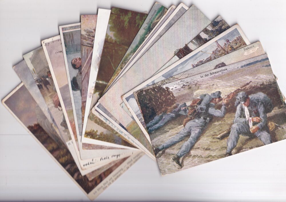 Vojenská pohlednice RU, WW1 Poslední pozdravy, první oběť set 3 ks